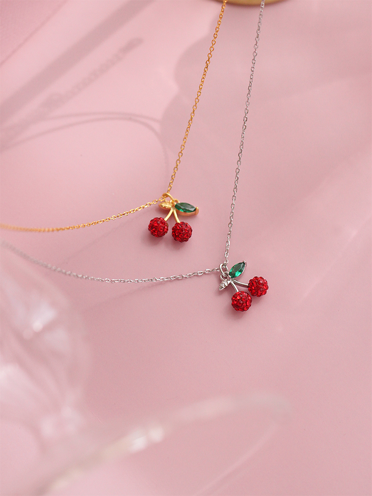 Enhance your jewelry collection with our beautiful 925 Silver Cherry Necklace. This elegant choker adds a gentle touch of charm to any outfit. Its adjustable chain, measuring 39.5cm with an additional 4cm extension, ensures a comfortable and perfect fit. The delicate water wave chain brings a modern flair, suitable for everyday wear or special occasions. The cherry pendant, about 1cm in diameter, is thoughtfully designed to represent sweetness and happiness. Available in both gold and silver, this necklace lets you showcase your personal style with ease.
